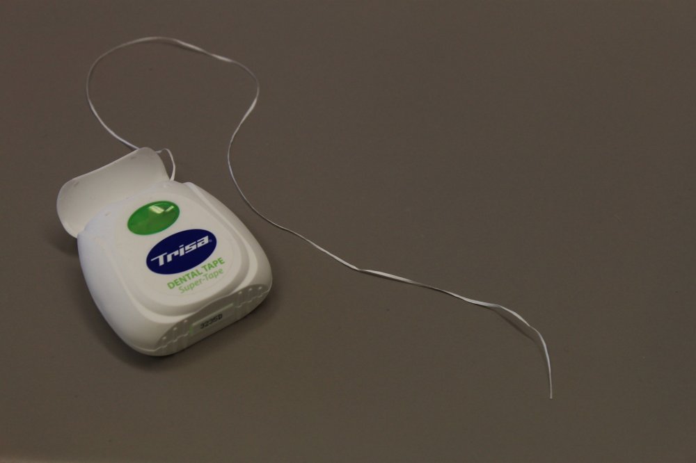 The second one is what I would call “flossers.” These are small pieces of plastic that look somewhat like the letter Y, with a piece of floss strung between them [2]. Essentially, these can be a little easier to use than string floss, and are so small, they can fit in a pocket, purse, desk drawer, etc. They are also pretty common, and (somewhat) acceptable to use in public (it’s almost like using a toothpick.)